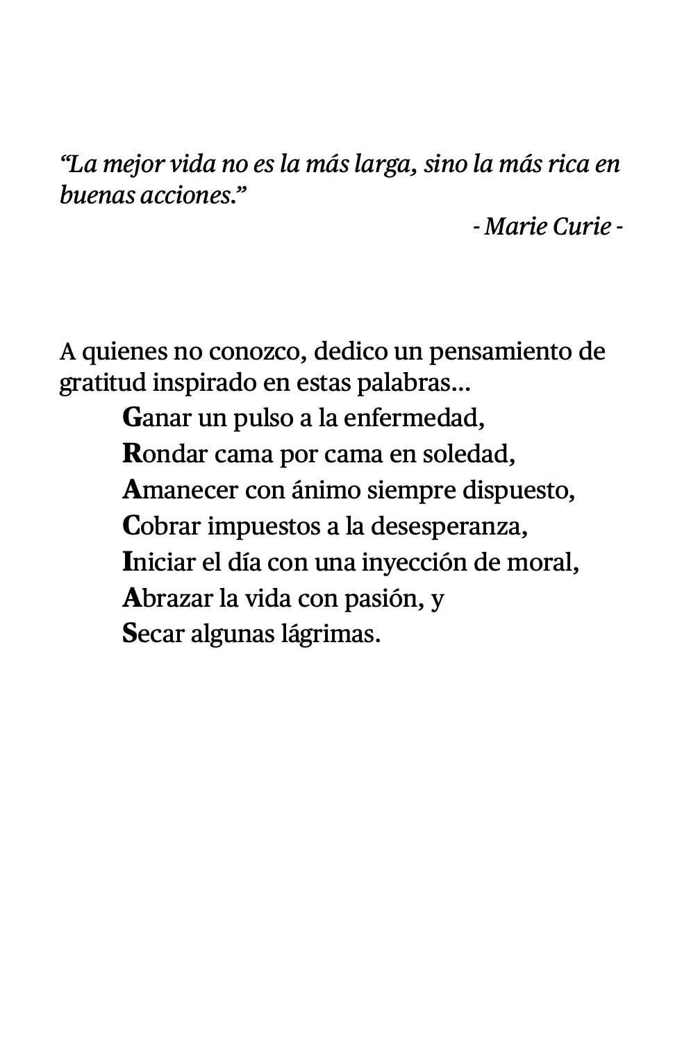 Alguien por quien lucharPaula Ramírez16 mar 20201 Min. de lecturaActualizado: 2 abr 2021Cartas escritas a pacientes y personal sanitario de hospitales en tiempos de COVID-19 por Isaac Santos. - Afasia -